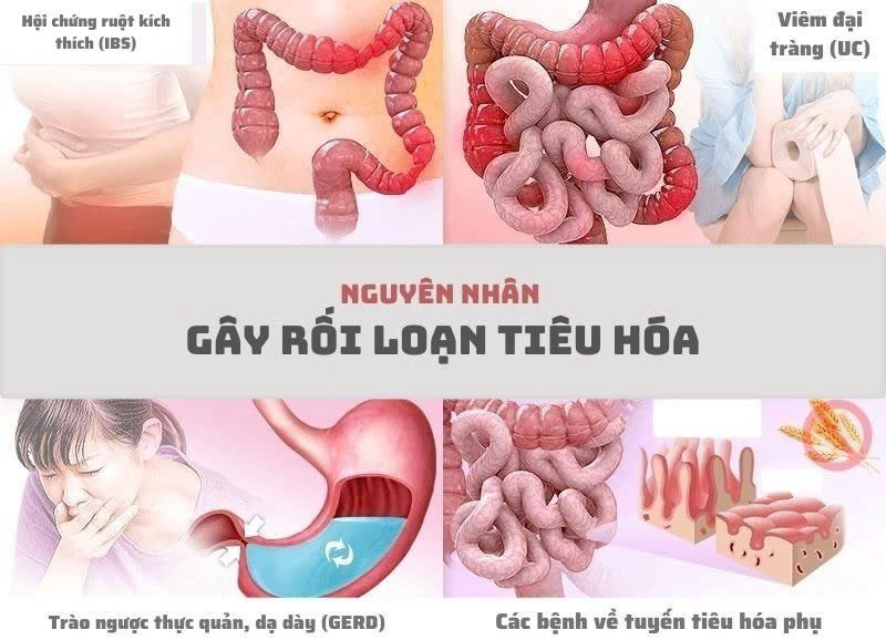 Các bệnh lý là nguyên nhân gây rối loạn tiêu hóa phổ biến nhất bao gồm: