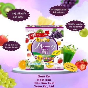 Malto dextrin, Bột lúa mạch non, Chiết xuất lên men thực vật (Đường đen, Bắp cải, Dâu tây…), Bột nho, axit lactic, Chiết xuất Casis, Vitamin C, Axit citric, Hương liệu, Natri, sắt, citrat, Chất làm ngọt (Hợp chất Aspartame・L-phenylalanine), Axit Folic.