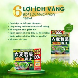 Bột mầm lúa non hữu cơ nguyên chất YUWA Nhật Bản, giúp thanh lọc cơ thể, thải độc, chống lão hóa Hộp 100 gói (100 ngày)